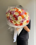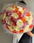 A refined bouquet composed of 51 premium roses in a harmonious blend of creamy ivory, soft pink, and warm coral tones. Each rose is carefully selected for its full bloom and long, elegant stem, creating a voluminous yet balanced arrangement with a polished, modern look.