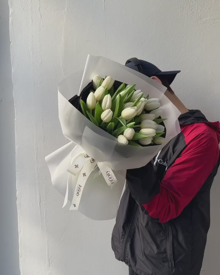 Elegant white tulips arrive fresh and ready to brighten your space with their iconic sleek stems and velvety soft petals. These classic spring blooms exude minimalist sophistication while their graceful form brings a sense of calm and refinement to any setting.